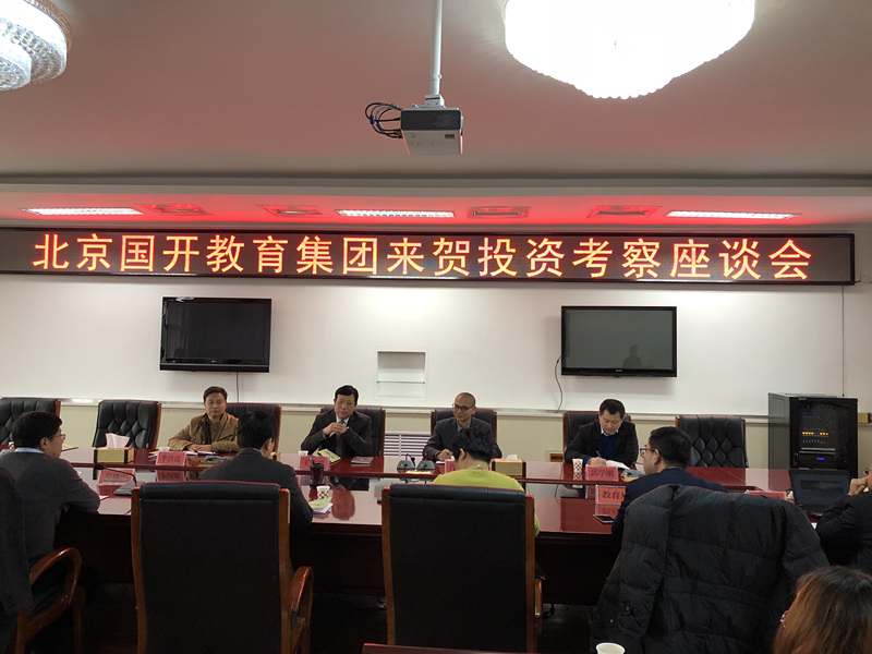 2018年1月7--8日,国开教育集团董事长兼总裁王鲁刚、国内教育事业部行政总监李洪霞、教育配套产业事业部行政总监邱学刚等一行考察宁夏银川贺兰县科教园项目,并与贺兰县委书记刘甲锋、县长赵波商谈办学事宜。贺兰县委常委兼统战部长秦建忠、副县长陈娜、教体局局长王剑平、财政局局长刘国荣、国土资源局局长常雪峰、住房与城乡建设局局长岳建平、经济技术合作局局长王海峰、行政审批服务局局长陈立新、习岗镇党委书记马国峰、教体局副局长达秀梅等领导出席。