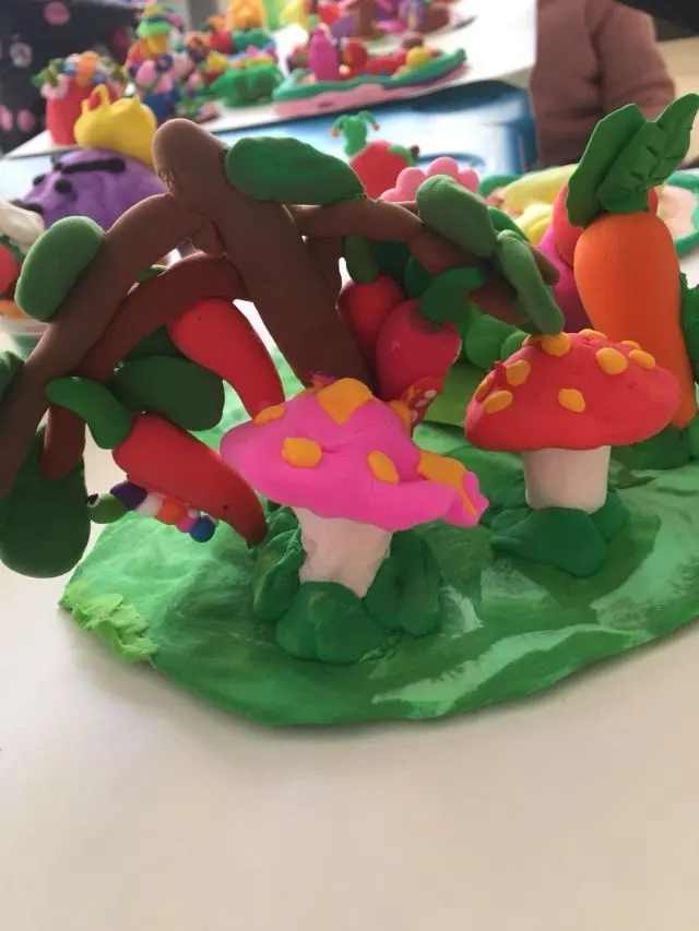 橡皮泥是一种独特风格的手工艺术,制作简单方便。在制作中左右手同时操作也可调节思维,平衡左右脑智力开发。手捏橡皮泥,让孩子们在五颜六色的橡皮泥中揉、搓、捏、切之间体会到泥塑带来的乐趣与美感;让孩子们在快乐中收获自己的作品,鼓励孩子们发现身边美好的事物,这对于他们来说是一件十分有乐趣和成就感的事情。