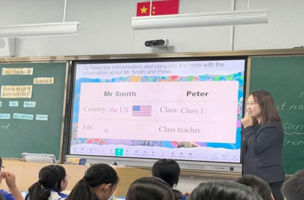 丁琳老师同样是一位经验丰富的教育工作者,在多年的教学实践中,她不断探索、总结,形成了行之有效的教学方法。此次围绕“You and Me”这一充满温情的主题,她带来了一堂引人入胜的听说课。她精心挑选多个听力材料,如同为学生们搭建了一级级通往自我认知的阶梯。在丁老师循循善诱的引导下,学生们从学习如何介绍自己的基本信息,到分享兴趣爱好,再到畅谈未来梦想,每一步都走得扎实而坚定。凭借丰富的教学经验,丁老师能够敏锐地捕捉到学生的需求和困惑,及时给予指导和帮助。课堂上,同学们积极踊跃,眼神中闪烁着对知识的渴望和对表达的热情。他们用稚嫩却坚定的声音,介绍着自己,也倾听着他人。通过这堂课,学生们不仅掌握了自我介绍的基本技巧,更在彼此的交流中增进了了解,收获了友谊,课堂成为了他们探索自我、认识他人的奇妙天地。