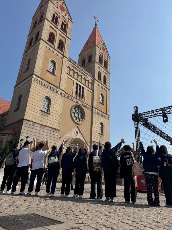 在全校老师们的带领下,徒步正式开始!同学们以各班级为单位沿路做NPC任务,一路上用镜头记录美丽景色,共同打卡地标性建筑,时而欢声笑语,享受着徒步的乐趣。