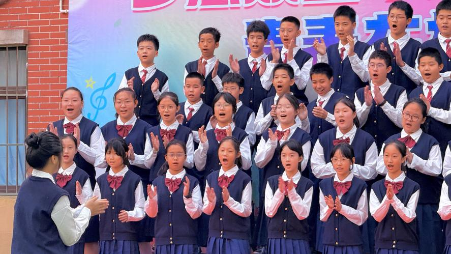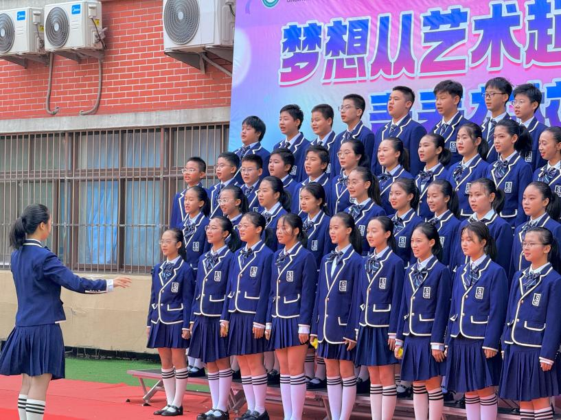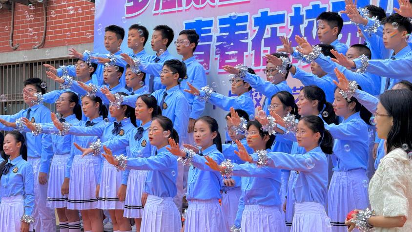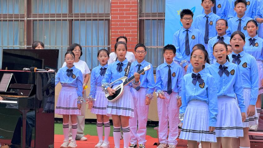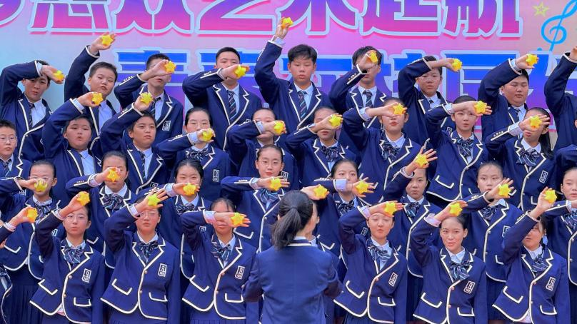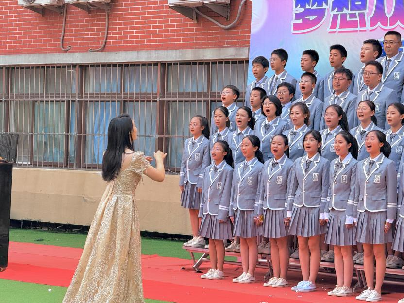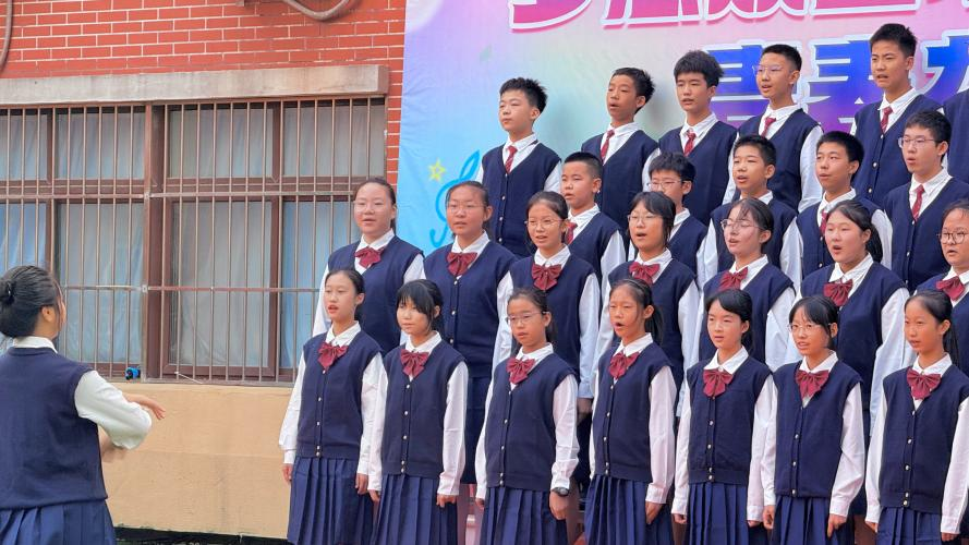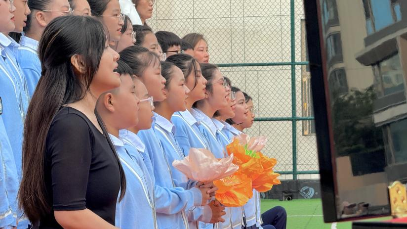 七年级6班带来的歌曲是《国开之光》和《给所有知道我名字的人》。每一段传奇的背后,都有默默支持的力量;每一个闪亮的名字之下,都凝聚着无数期待的目光。同学们将所有的感激化作最激昂的歌声。这是一次对过往的致敬,更是一次对未来的誓言。