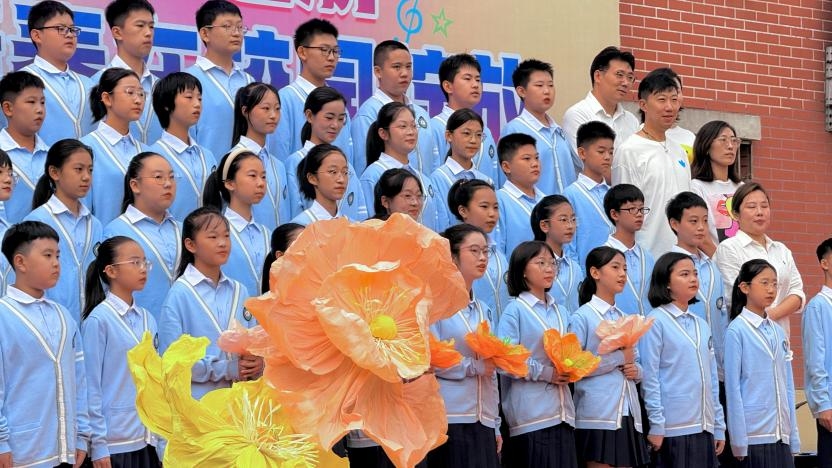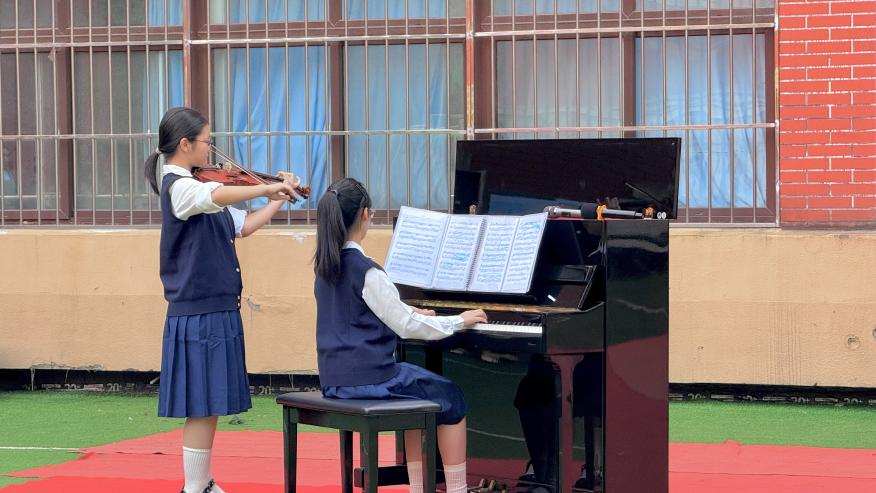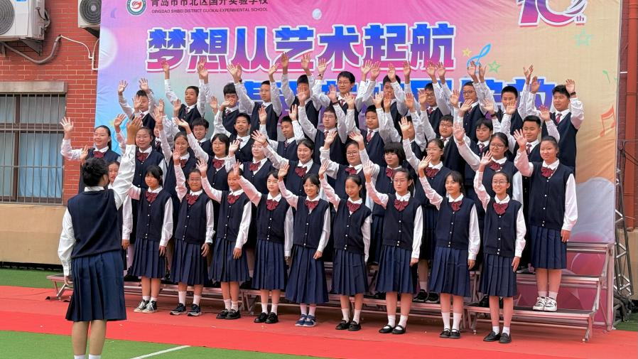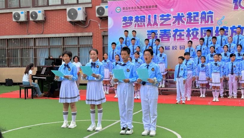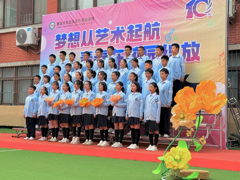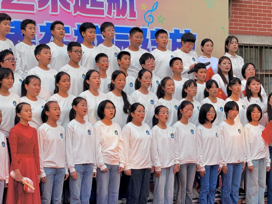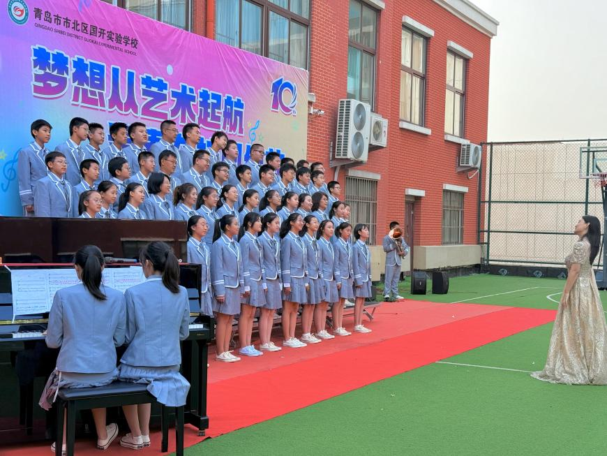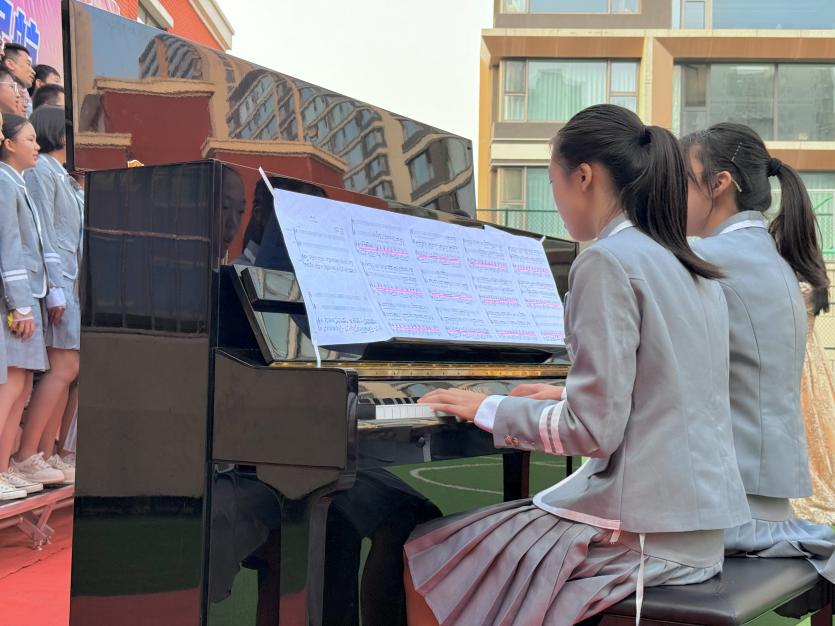 七年级6班带来的歌曲是《国开之光》和《给所有知道我名字的人》。每一段传奇的背后,都有默默支持的力量;每一个闪亮的名字之下,都凝聚着无数期待的目光。同学们将所有的感激化作最激昂的歌声。这是一次对过往的致敬,更是一次对未来的誓言。