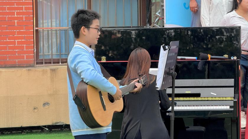 在晨光里默写梦想,在星光下讨论远方,日子像被拉长的和弦,每一个音符都闪着倔强的光。七年级3班带来的歌曲《国开之光》、《少年》,唱出了此刻青春燃烧时最鲜活的模样。