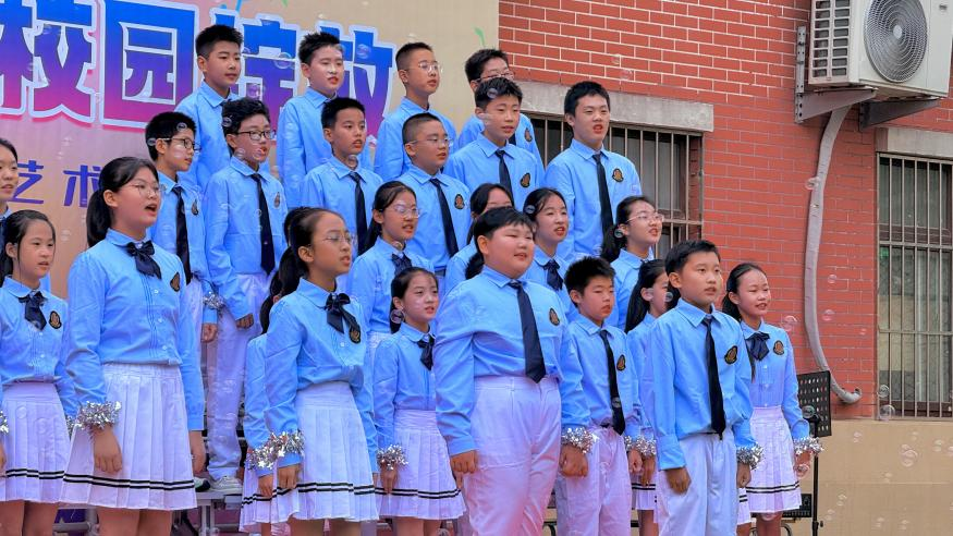 七年级5班带来的合唱《国开之光》、《如愿》,带我们聆听时光的回响,见证梦想的接力。同学们用动人的歌声,唱出他们对父母、对师长、对这个伟大时代最深沉的谢意。