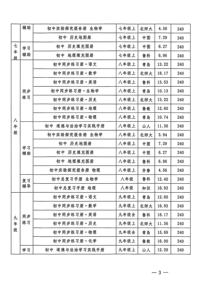 为科学规范做好教辅材料评议、推荐和选用工作,切实减轻学生课业负担,办人民满意的教育,我校严格执行山东省教育厅、青岛市教育局相关要求,严格落实"一科一辅""自愿征订"的原则,现将2025年秋季教辅材料推荐选用目录予以公示。