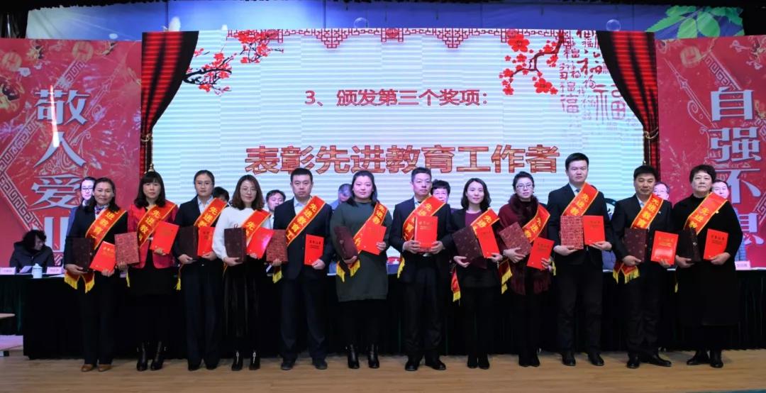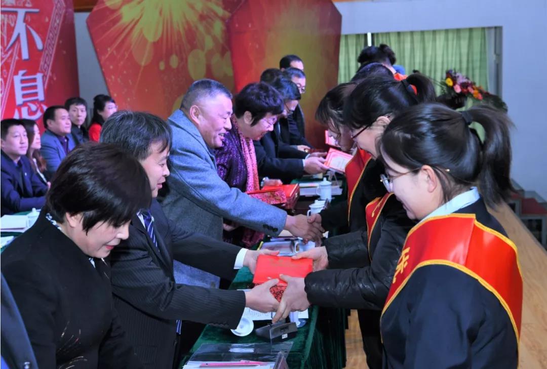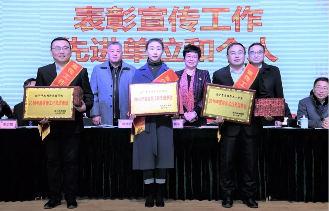 2017-2018年度集团共有162名优秀教师、优秀班主任、先进教育工作者、教育管理先进个人、爱岗服务标兵和宣传工作先进个人受到了表彰,青岛国开实验学校、青岛国开第一中学和平度国开实验学校获得“宣传工作先进单位”称号。集团号召广大教职员工要以先进为榜样,以更加饱满的工作热情,更加高严的工作标准,更加扎实的工作作风,充分发挥示范带头作用,立足岗位,建功立业,不断取得新的更大成绩。 主席台领导向获奖人员颁发证书和奖品