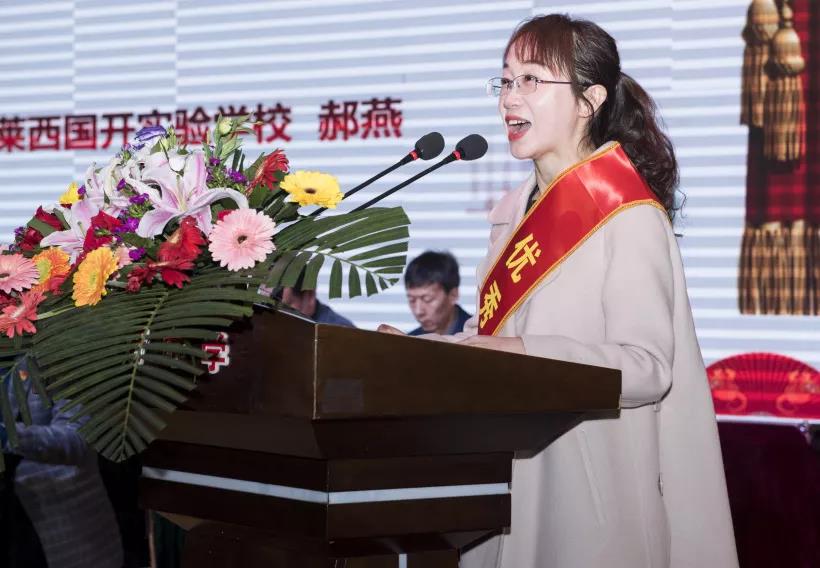 青岛国开中学官雪梅、莱西国开实验学校郝燕、国际教育事业部宋文琴、教育配套产业事业部孙升刚作为教职工代表上台分享他们敬业奉献的心路足迹和他们倾情耕耘得到的收获与感动。