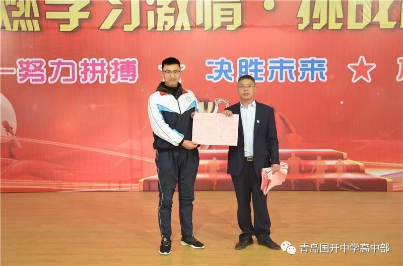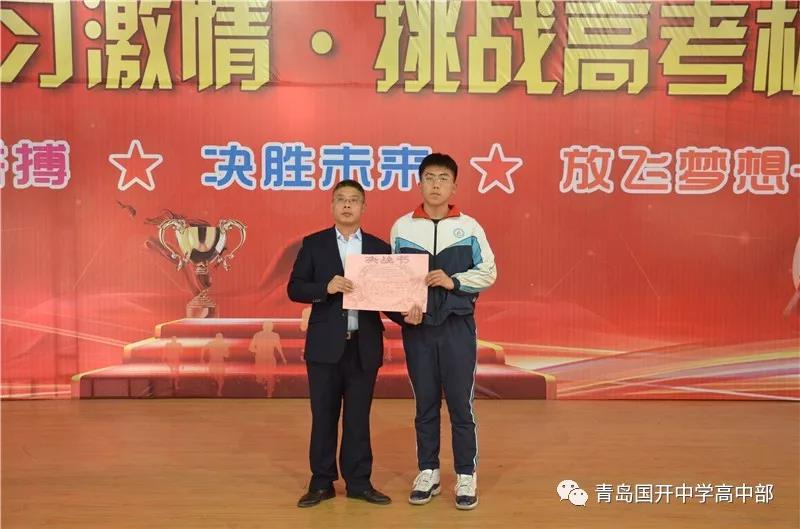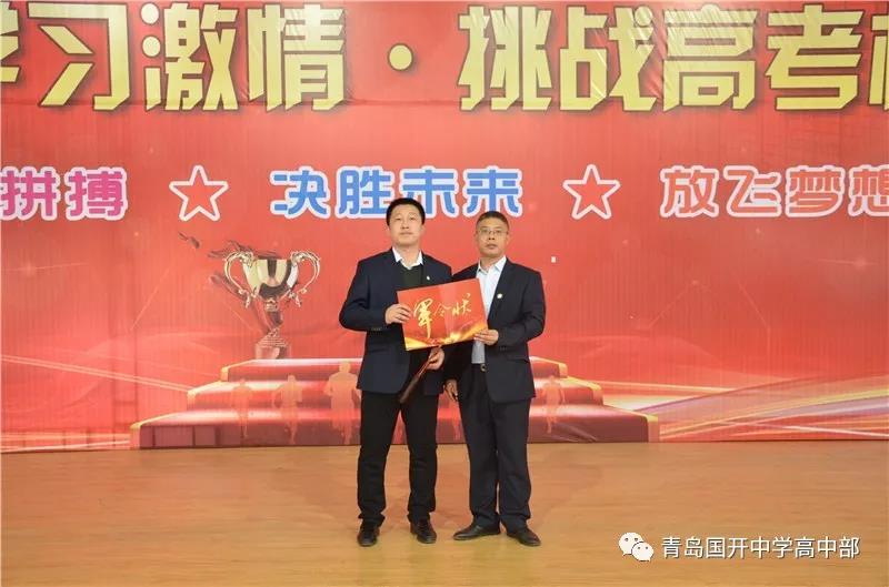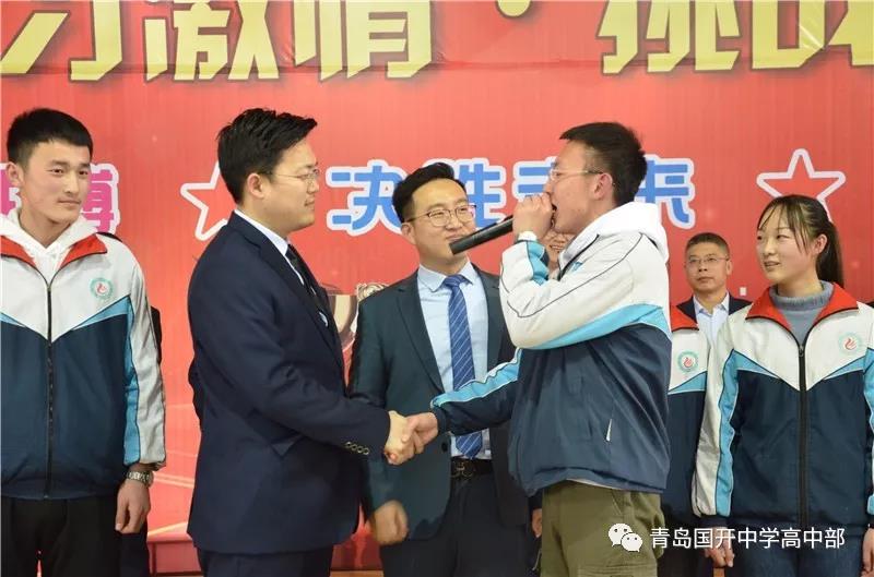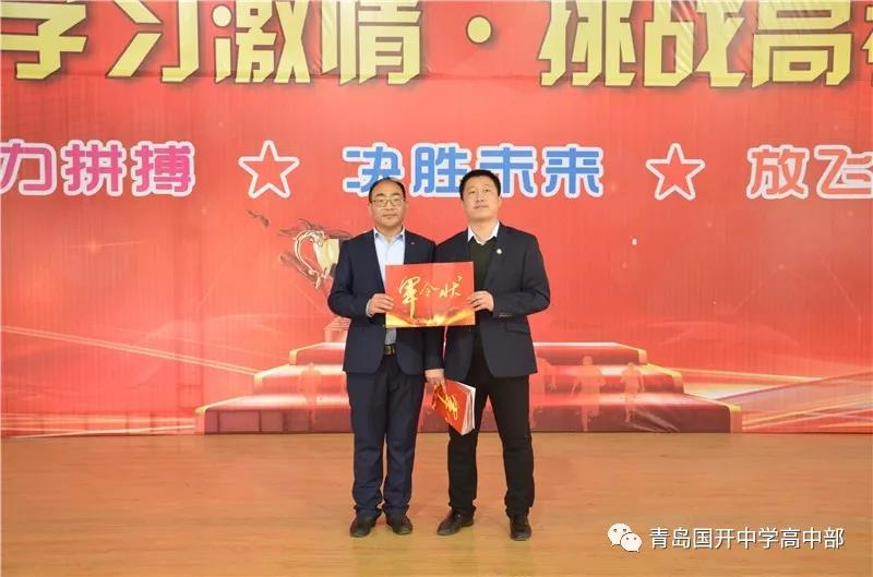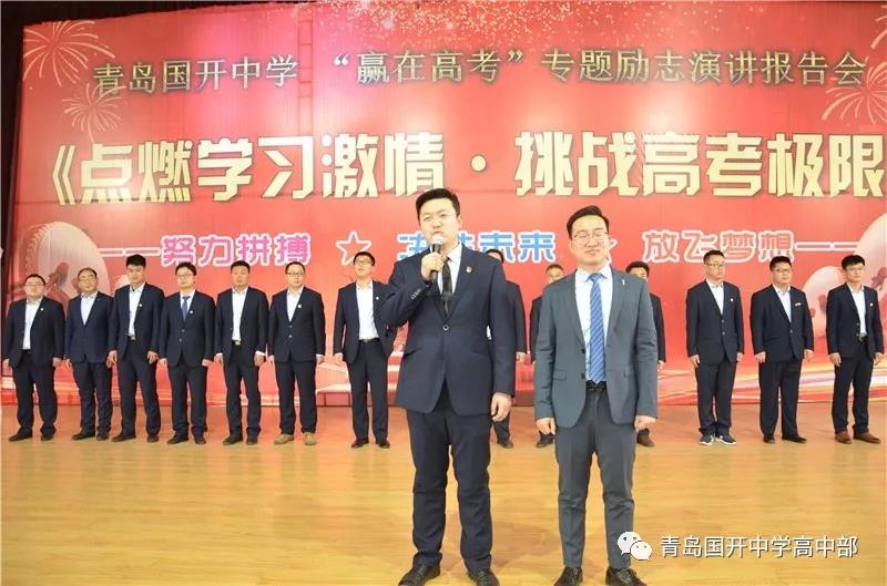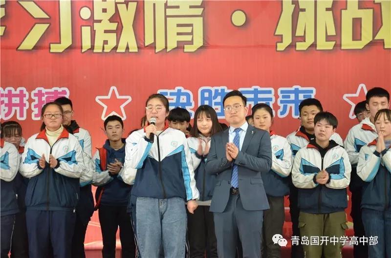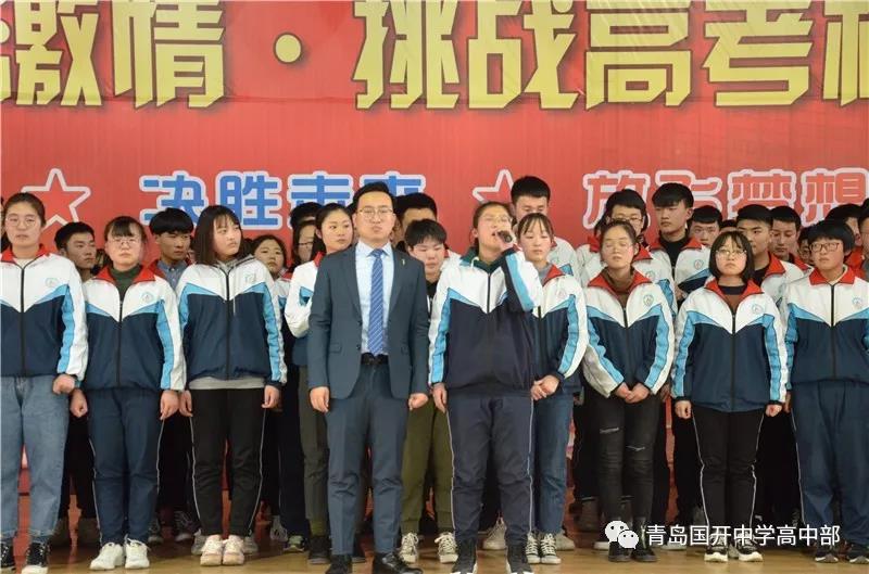 首先,由青岛国开中邓凯校长致辞,邓校长充满豪情地寄语同学们,希望每一位同学能扬起自信的风帆,敢于梦想;保持学习的定力,坚定梦想;激发奋斗的能量,为梦想而战!冲刺百日迎战高考,立志高远脚踏实地;全力以赴夺取胜利,一鼓作气创造辉煌!