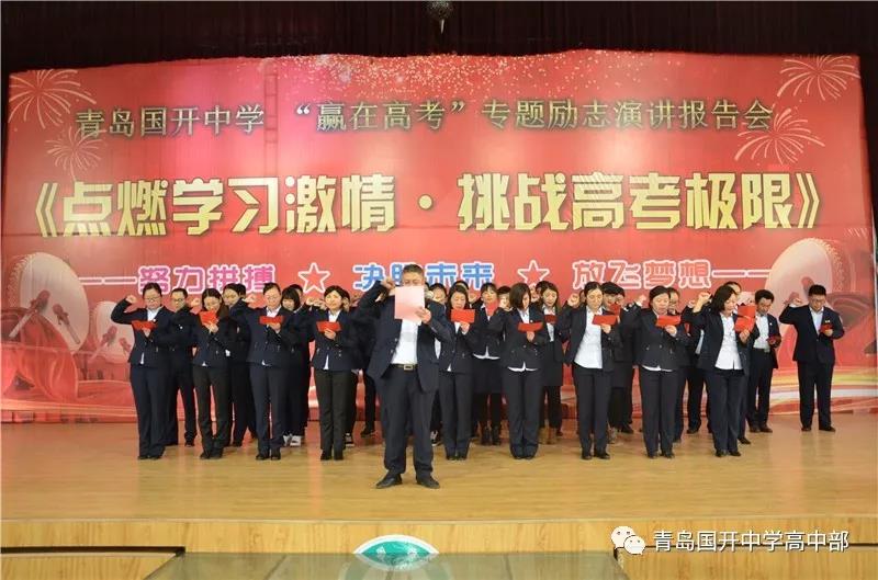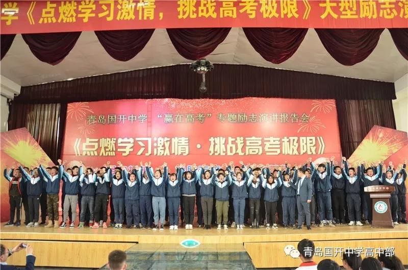 为了激发同学们的学习热情,点燃同学们奋斗拼搏的激情,挖掘同学们的学习潜能,以科学的方法备战高考,以积极的心态迎接高考,在距离高考仅有百日的关键时刻,青岛国开中学在学校演播大厅举行了主题为“点燃学习激情 挑战高考极限”的励志报告会暨2019届高三决战高考百日誓师大会。青岛国开中学邓凯校长,教导处田洪波主任,团委刘凯书记,高二、高三级部负责人,以及高二、高三的全体教师和学生参与此次大会。