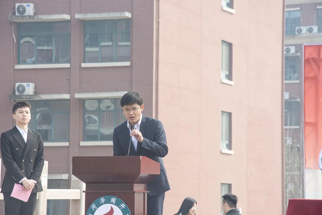 大会最后,校长朱晓龙发表题为《春风迎新季 巾帼绽芳华》的新学期致辞,为全体师生送上新学期的问候与三八妇女节的美好祝福。朱校长回顾了学校过去一学期在教学提质、艺体发展、习惯养成等方面的稳步发展,坚守 “实施精彩教育,成就幸福人生” 的办学方针,硕果累累。同时,他向全体师生提出三点希望:立心立向,做有理想的追梦人;深耕笃学,做有本领的奋斗者;向阳向善,做有温度的国开人。