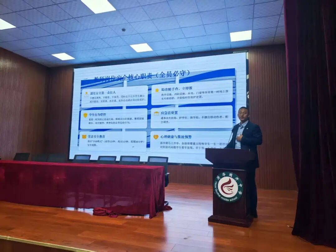作为寄宿制学校,安全与精细管理是学校工作的重中之重。培训中,全体教职工认真学习学校精细化管理要求,落实朱校长提出的 “强化精细管理,筑牢安全底线” 工作部署。德育、后勤、安保、班主任及各任课教师明确分工、协同发力:要抓实常规管理,规范学生行为习惯,强化纪律、礼仪与心理健康教育;要严守安全红线,全面排查校园安全隐患,实现门禁、食堂、宿舍、消防等全方位管理无死角;要提升服务品质,用细心、耐心、爱心为学生成长保驾护航,让家长放心、社会满意。同时,全体教师牢记安全责任,无论是班主任还是任课教师,都将安全教育融入日常教学与管理,筑牢校园安全防线。