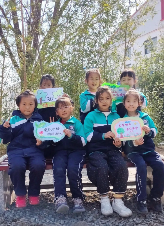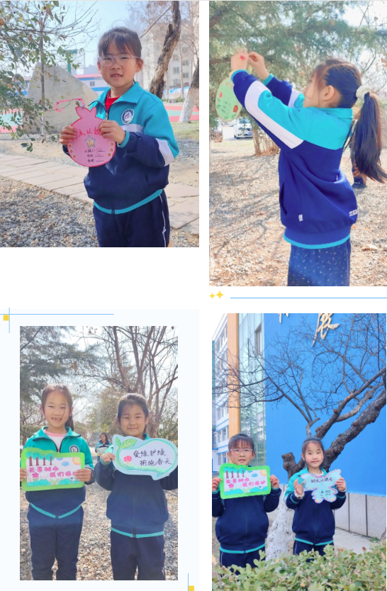 带着精心制作的认领牌和宣传标语,孩子们排着整齐的队伍来到校园里。大家小心翼翼地将认领牌挂在小树上,让小树有了专属的“守护者”;手持宣传标语与小树合影,用镜头定格爱绿护绿的美好瞬间。