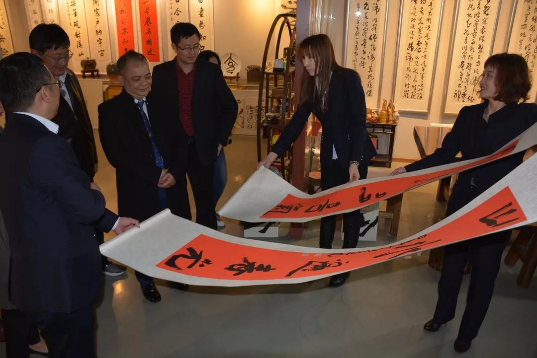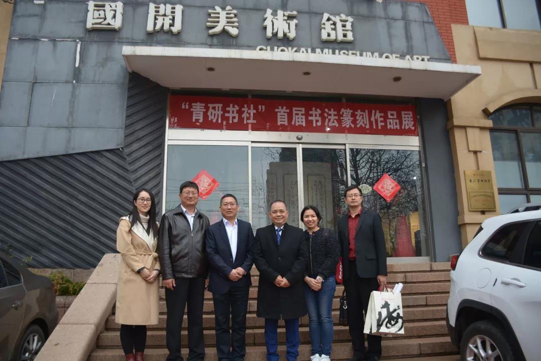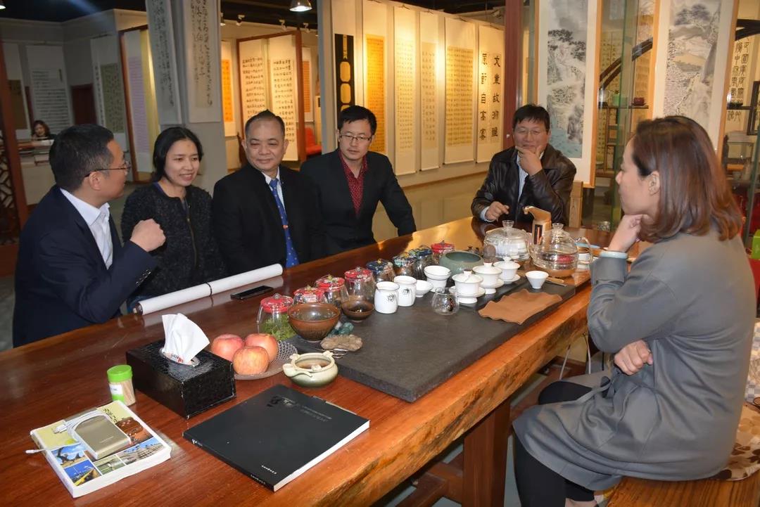 参观完青岛国开实验学校,泰国先皇技术学院Samart教授一行来到国开美术馆,对体现中国文化特色的文字、书法和茶艺表现出浓厚的兴趣。双方在氤氲着茶香和墨香的美术国开馆就文化认同、课程设置、语言教学等教育问题进行了广泛而深入的交流。
