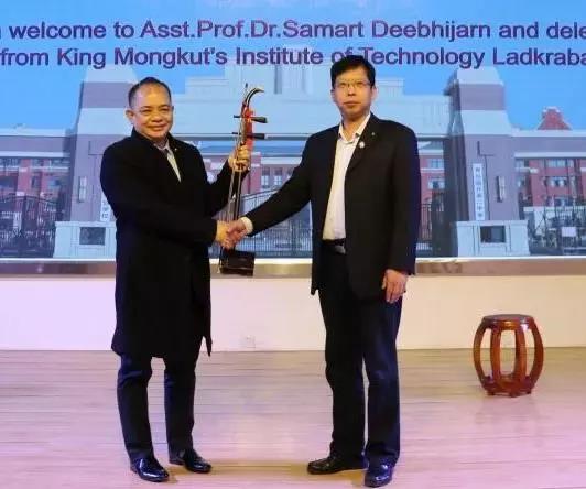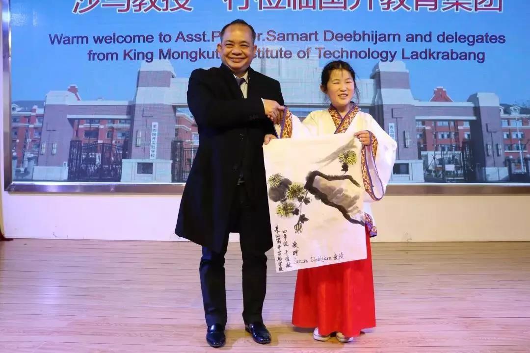 Samart教授向青岛国开中学副校长邓凯赠送礼物