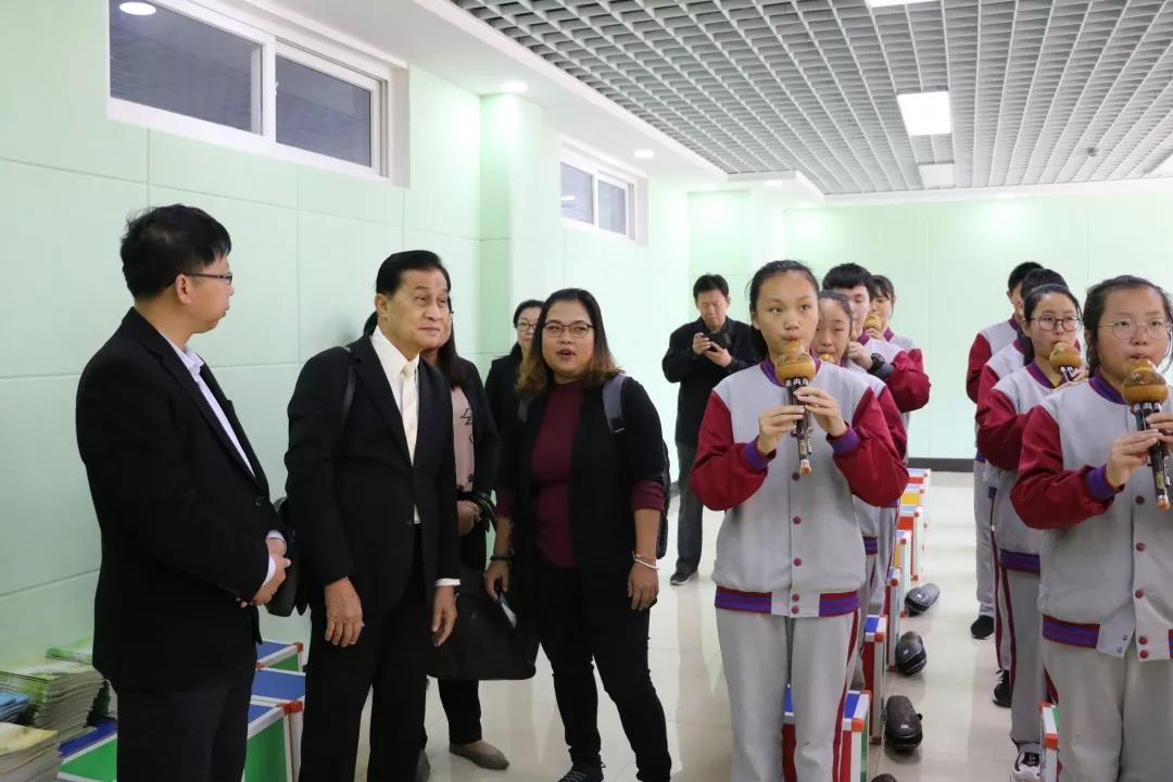 2019年4月26日,莱西国开实验学校迎来尊贵的客人——泰国乌隆他尼皇家大学考察团。乌隆他尼皇家大学校长CHAROON THAWORNCHAK(扎伦·塔喔扎)先生携助理兼国际部主任SUPATRA WANPEN(素帕塔·湾喷)女士一行五人在国开教育集团国际教育顾问臧运武和国际交流中心主任贾彩的陪同下参观了莱西国开实验学校,莱西国开实验学校校长薛晓明、青岛国开第二中学校长吴天峰及综合办主任刘喜旺热情接待了来访贵宾。