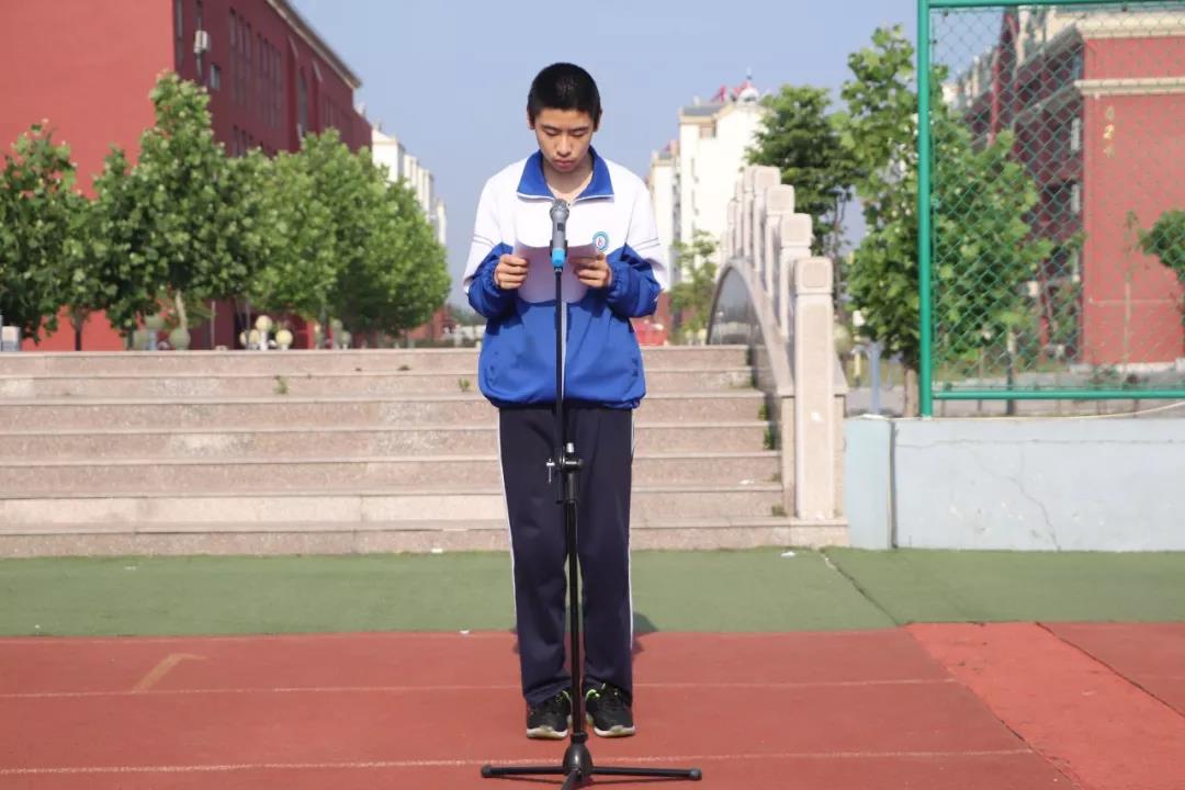 大会第四项由高一七班班长张翰林带领全体同学宣誓: