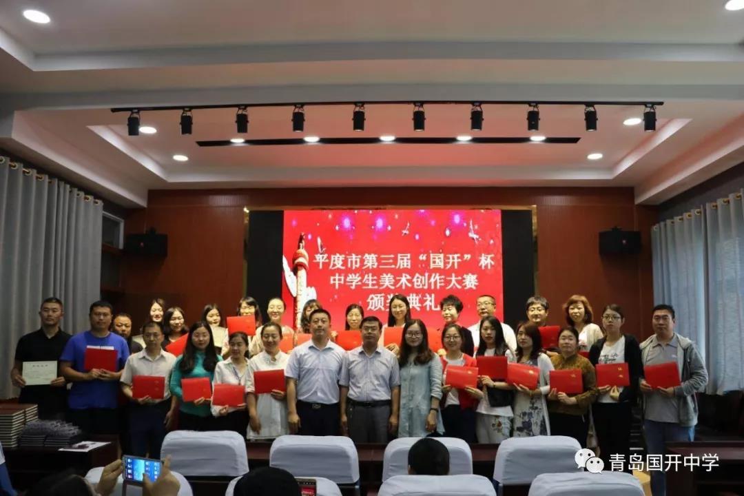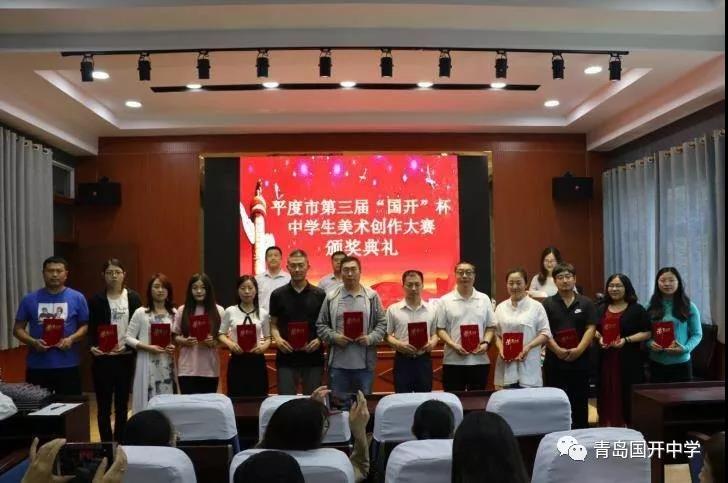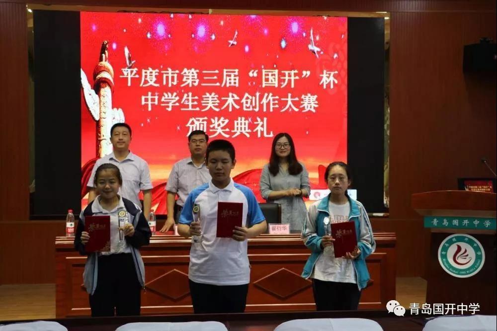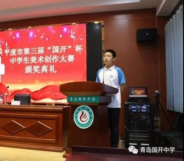 颁奖典礼首先由获奖学生代表发言,平度市教研中心中学美术教研员翟衍华,青岛国开中学校长邓凯分别向全体师生致辞。随后,与会领导对本次大赛获奖的指导教师及获奖学生进行颁奖