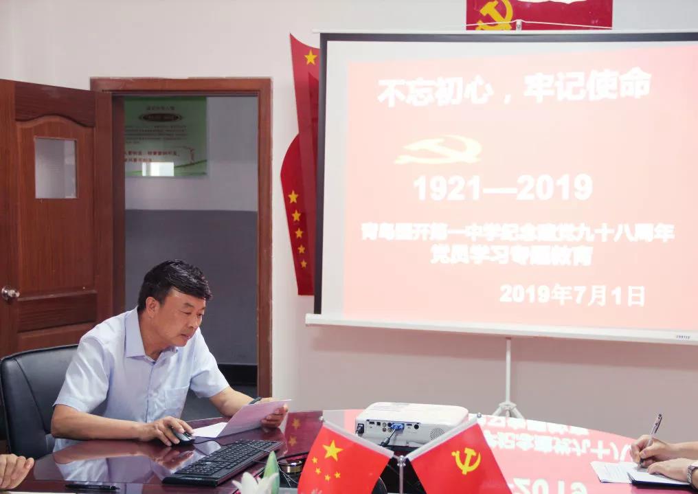 7月1日,在喜迎建党98周年之际,青岛国开第一中学党支部组织全体党员于清华楼三楼党员之家举行“庆祝中国共产党建党98周年”主题活动。活动由党支部副书记刘海燕同志主持。