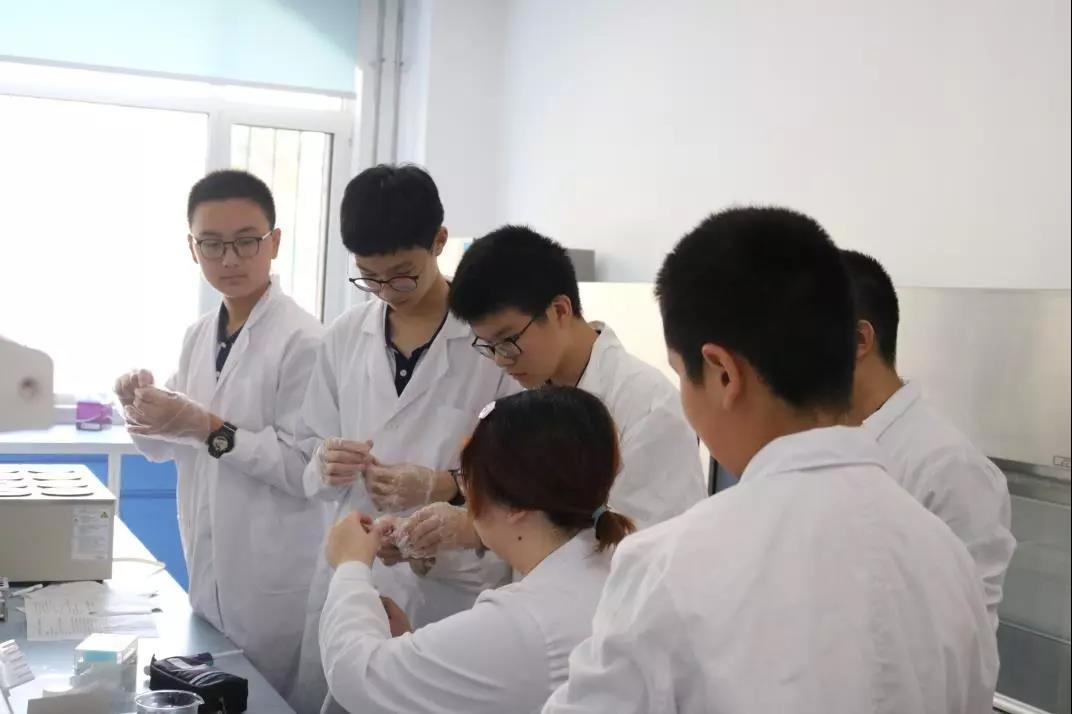 大家随后来到了海洋科技园,换好实验服,进入实验室。老师们讲解着具体步骤,带领着同学们一步步完成DNA提取和鉴定实验,在这一项目中,同学们不仅了解了生物学更深层次的内容,还锻炼了自己的动手能力。可谓收获满满。