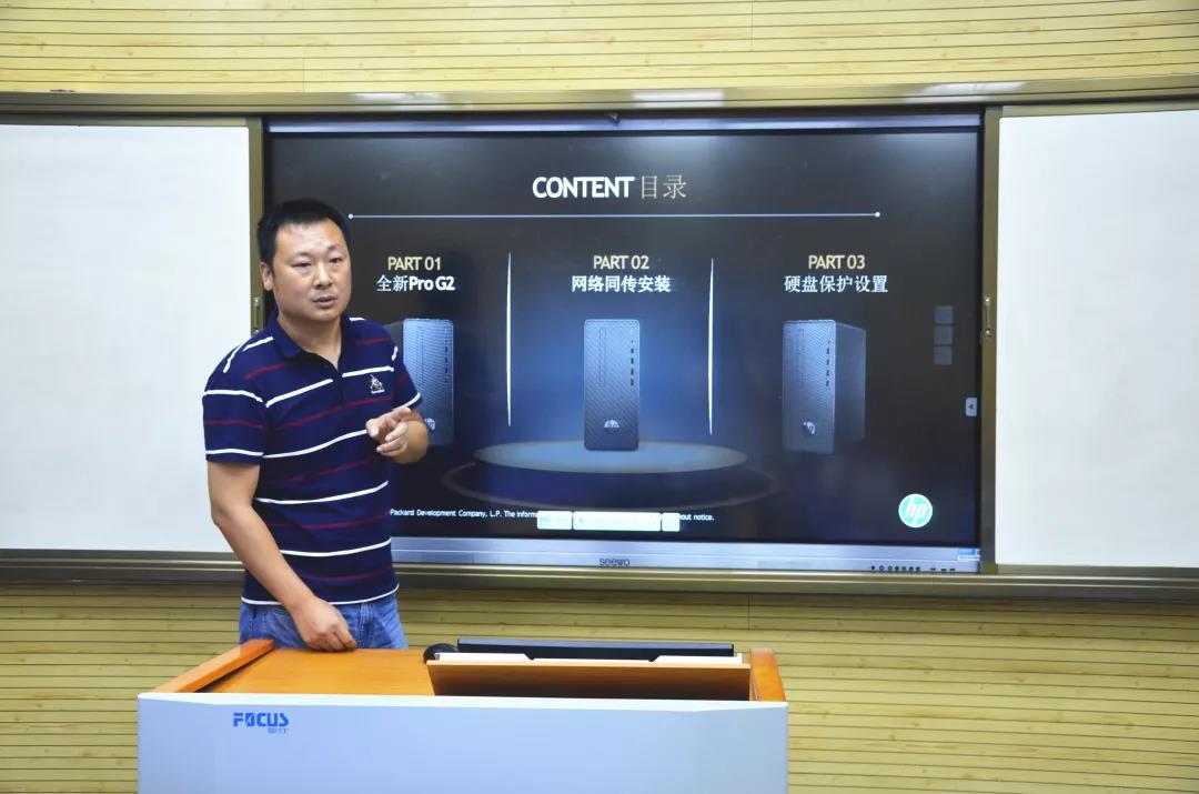 本次培训主要围绕各校区办公、教学设备的使用和维护展开,包括希沃交互智能平板使用和维护培训、监控设备管理和维护、中广上洋录播教室培训、云博士多媒体教学智能终端培训和惠普电脑HP desktop pro g2电脑及维护五大内容。